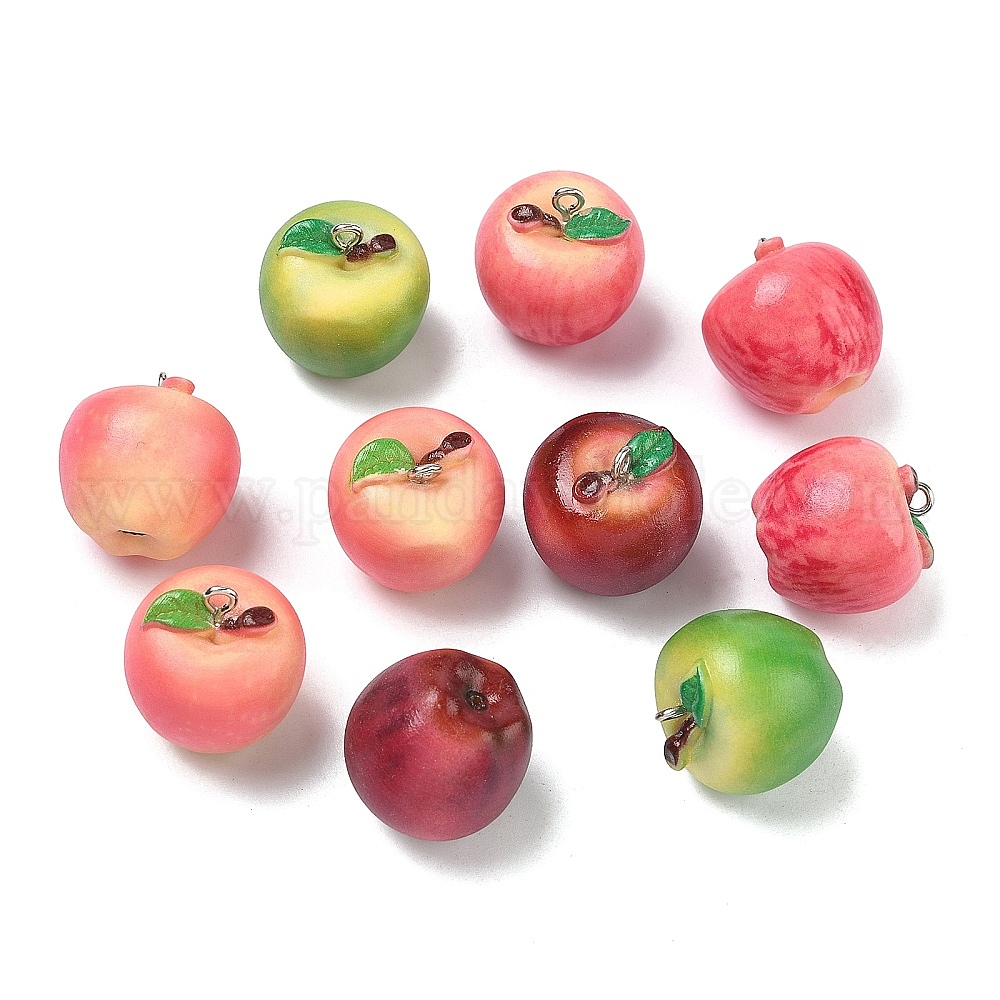 Кулоны из пищевой смолы, яблочный шарм, с железной платиной петлей