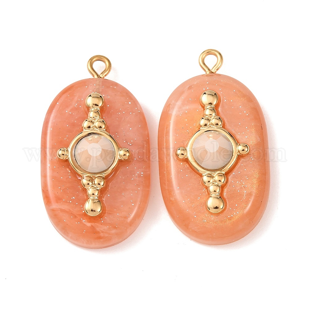 • Коралловый 304 подвески из нержавеющей стали смолы, овальные и крестообразные подвески, со стразами, золотые, коралл, 32.5x18x9 мм, отверстие : 2 мм
