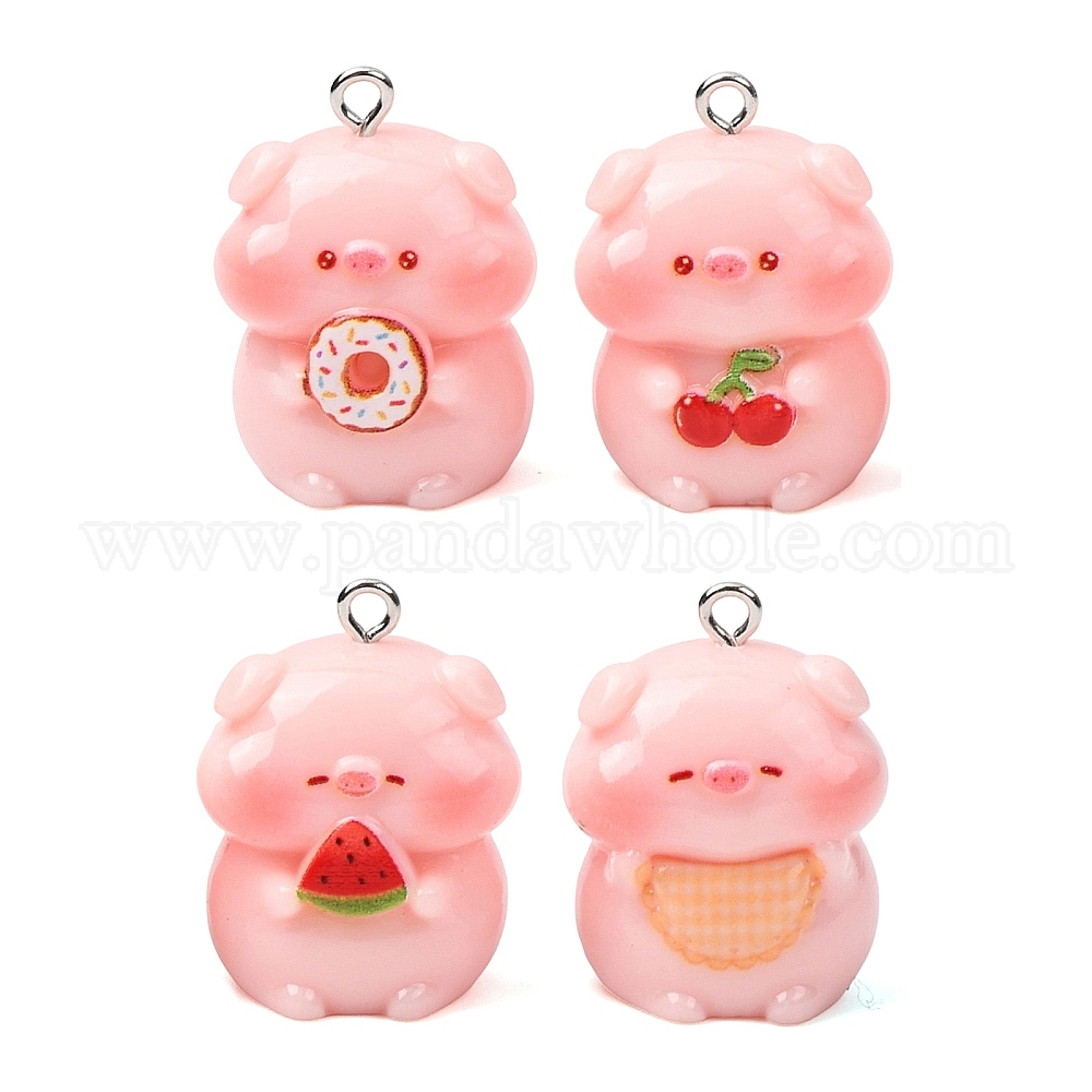 Непрозрачные подвески смолы, свинка с подвеской в виде фрукта/пончика, с железной платиной петлей
