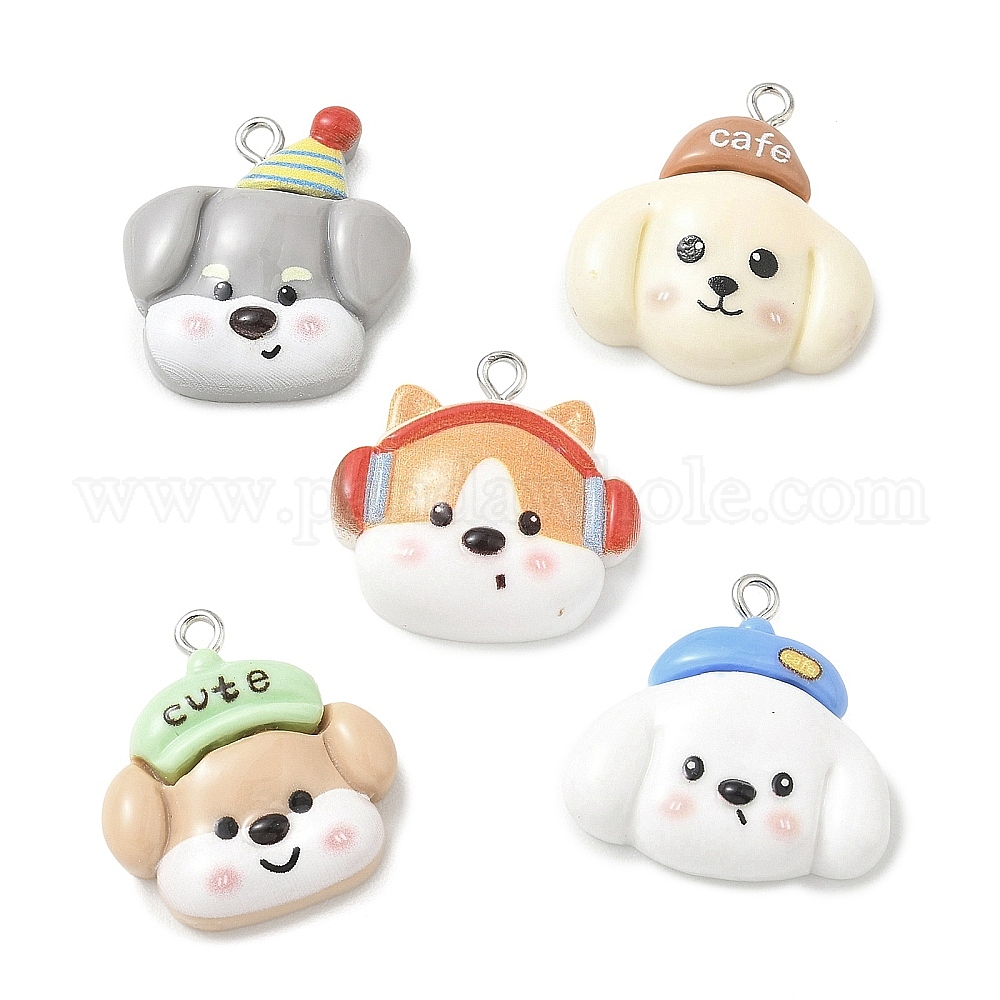 Непрозрачные подвески смолы, милый щенок-талисман, с железной платиной петлей