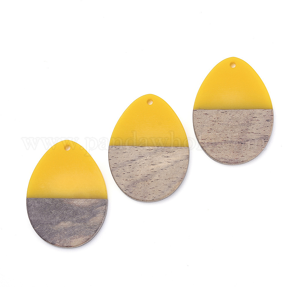 • Золотистый Подвески из смолы и ореха, слеза, золотые, 38x28x4 мм, отверстие : 2 мм