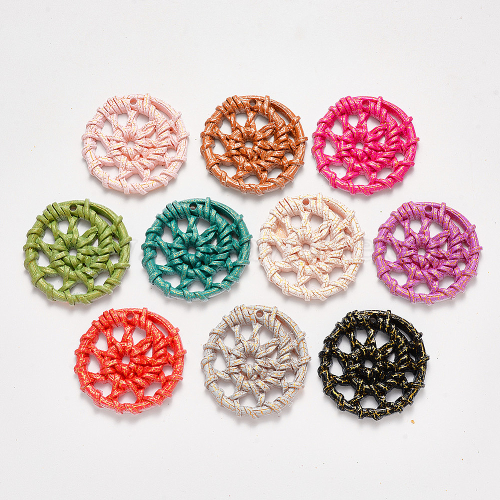 Подвески из смолы, имитация тканого ротанга, плоско-круглые
