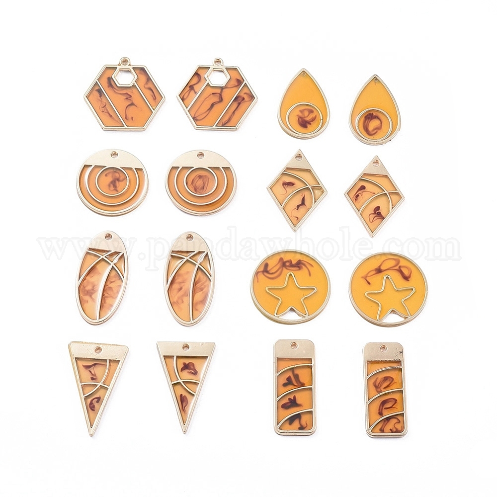 Эпоксидная смола подвески, с фурнитурой сплавочной золотистого тона, плоский круг со звездой, шестиугольником, перевернутым треугольником, прямоугольником, слезой и овалом, плоский круг и ромб