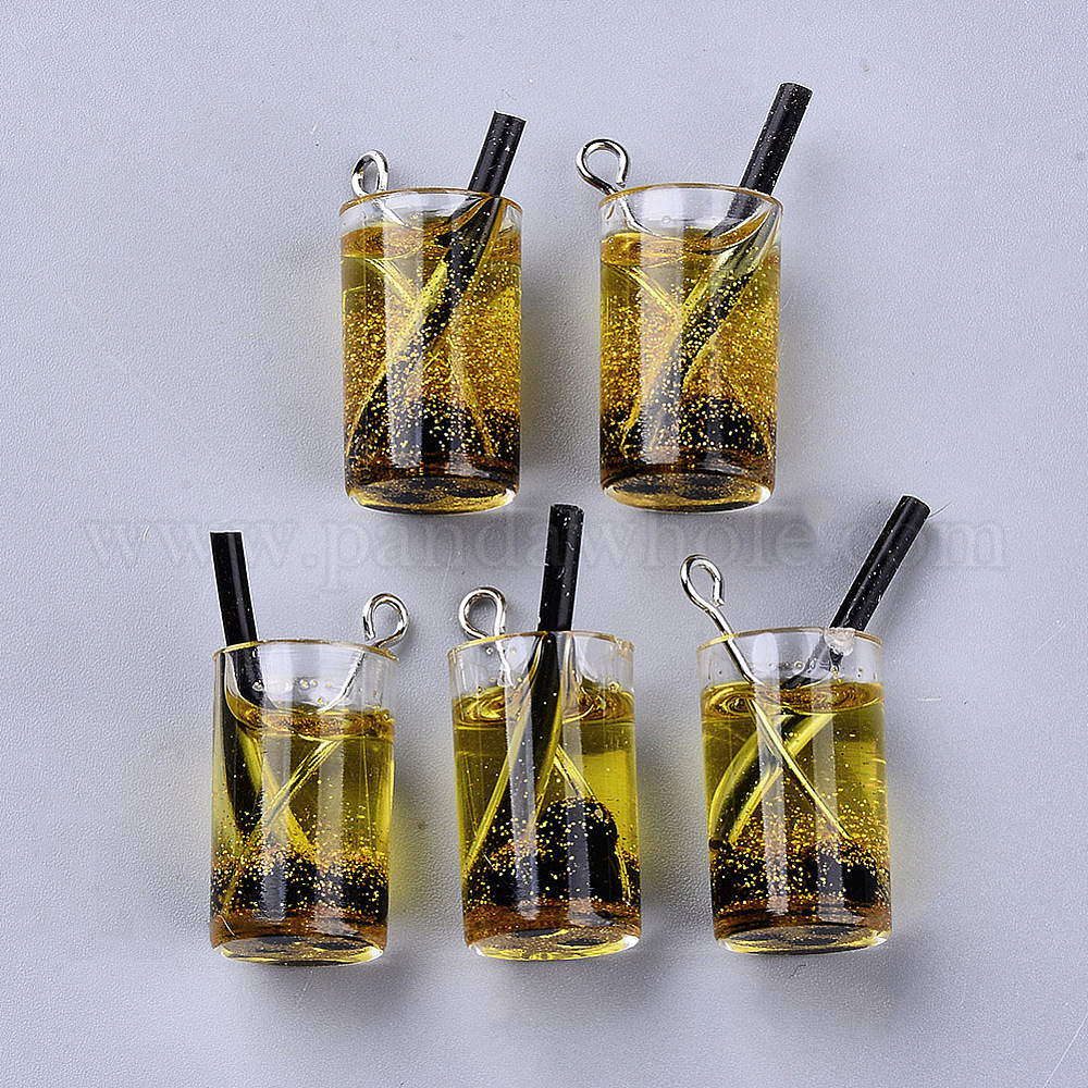 Имитация сока разливное пиво подвески из смолы, с блеском порошок внутри, железные булавки для глаз платинового тона
