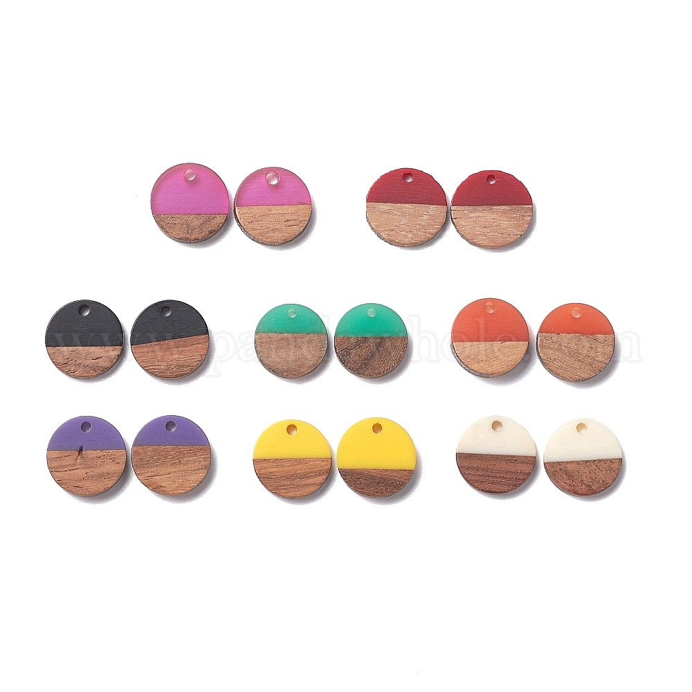 8 Цвета подвески из смолы и ореха, плоско-круглые