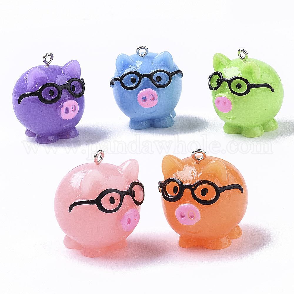 Подвески из смолы, с платиновым тоном железная петля, свинья в очках