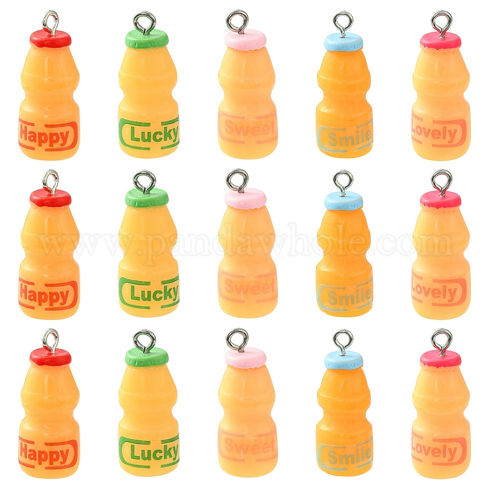 Подвески из смолы, с железной петлей с платиновым покрытием, со словом, бутылка йогурта