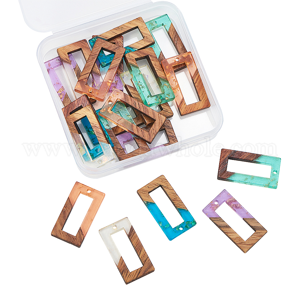 подвески из прозрачной смолы и орехового дерева: 28x15x3 мм, отверстие : 2 мм, 4 шт / цвет, 5 цветов, 20 шт / коробка;