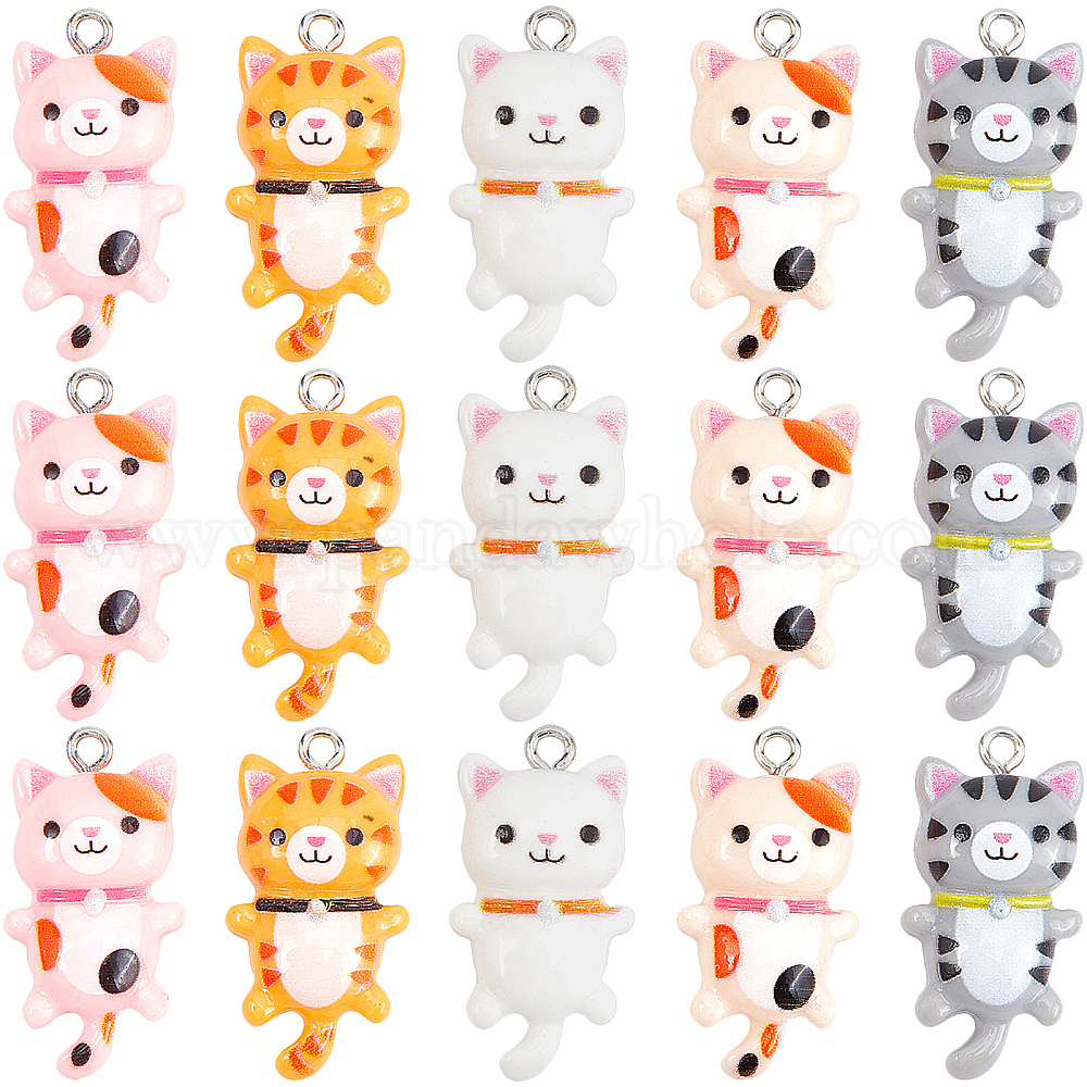 20 шт 5 цвета подвески из смолы, с платиновым железом, кошка (026QAT)