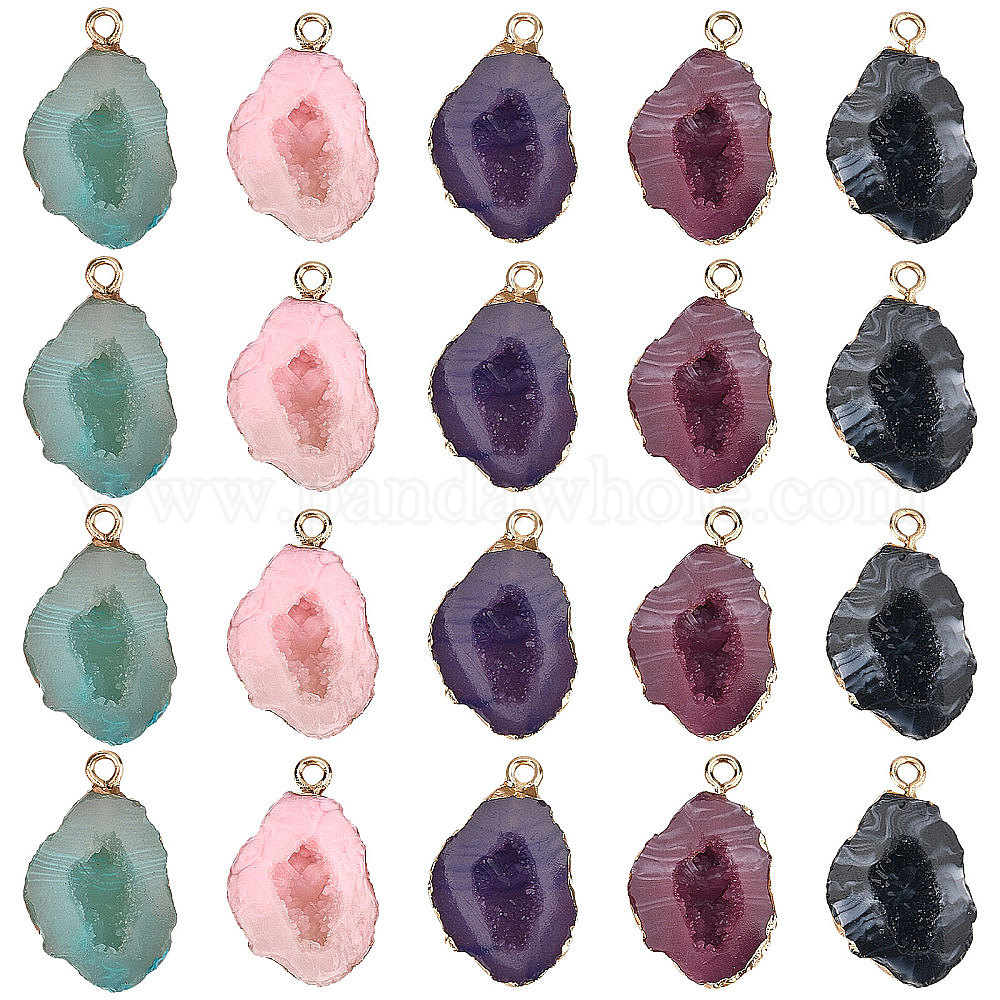 20шт 5 стиль друзы геодезические смоляные подвески, с лёгкими позолоченными железными петлями, самородки