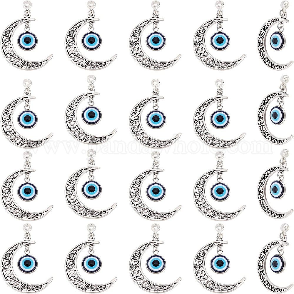 Большие подвески из сплава с полой луной, с синими смоляными злыми глазами, античное серебро, без кадмия и без свинца