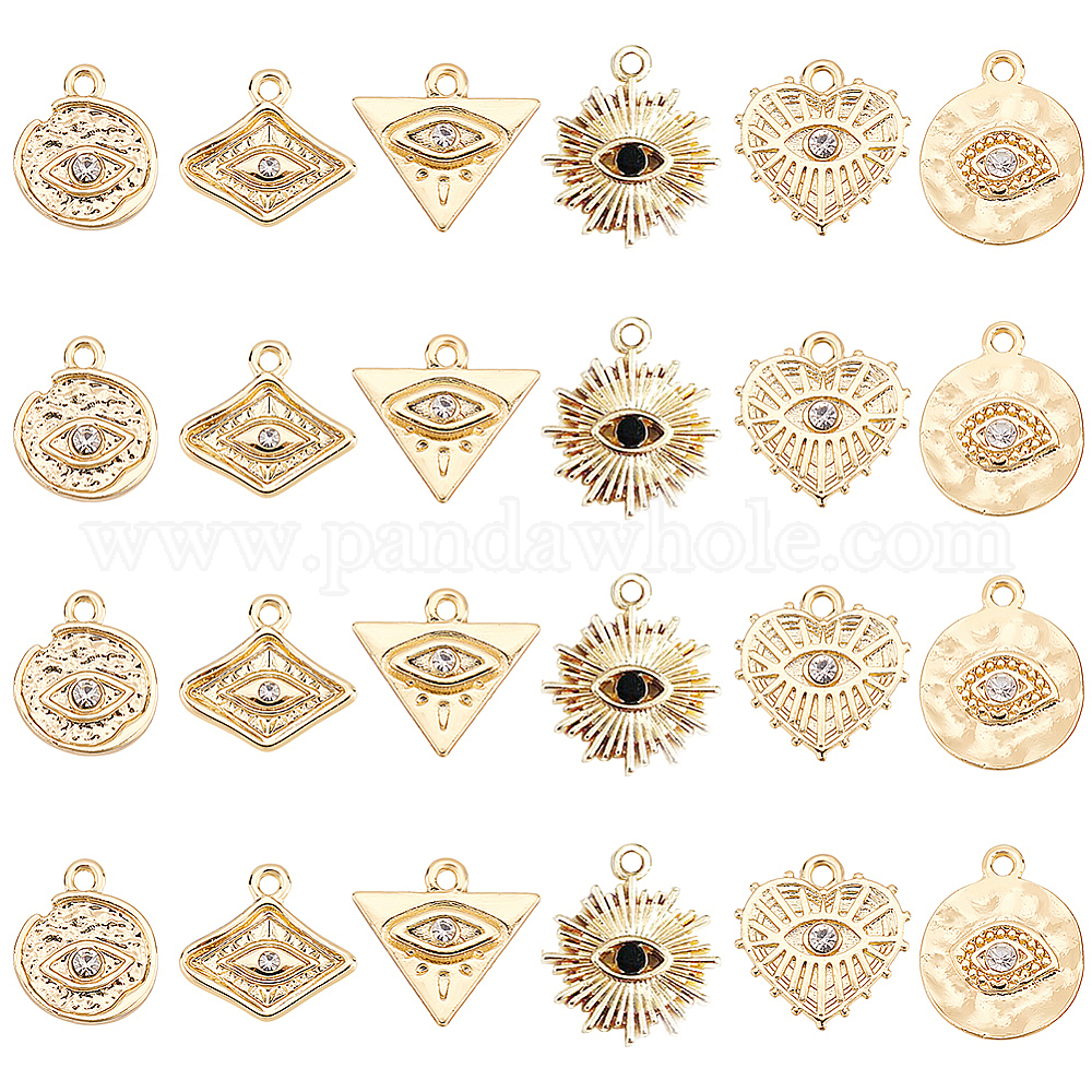 24 шт 6 подвески из сплава, с кристально горный хрусталь, без кадмия, без никеля и без свинца, смешанные формы с глазком