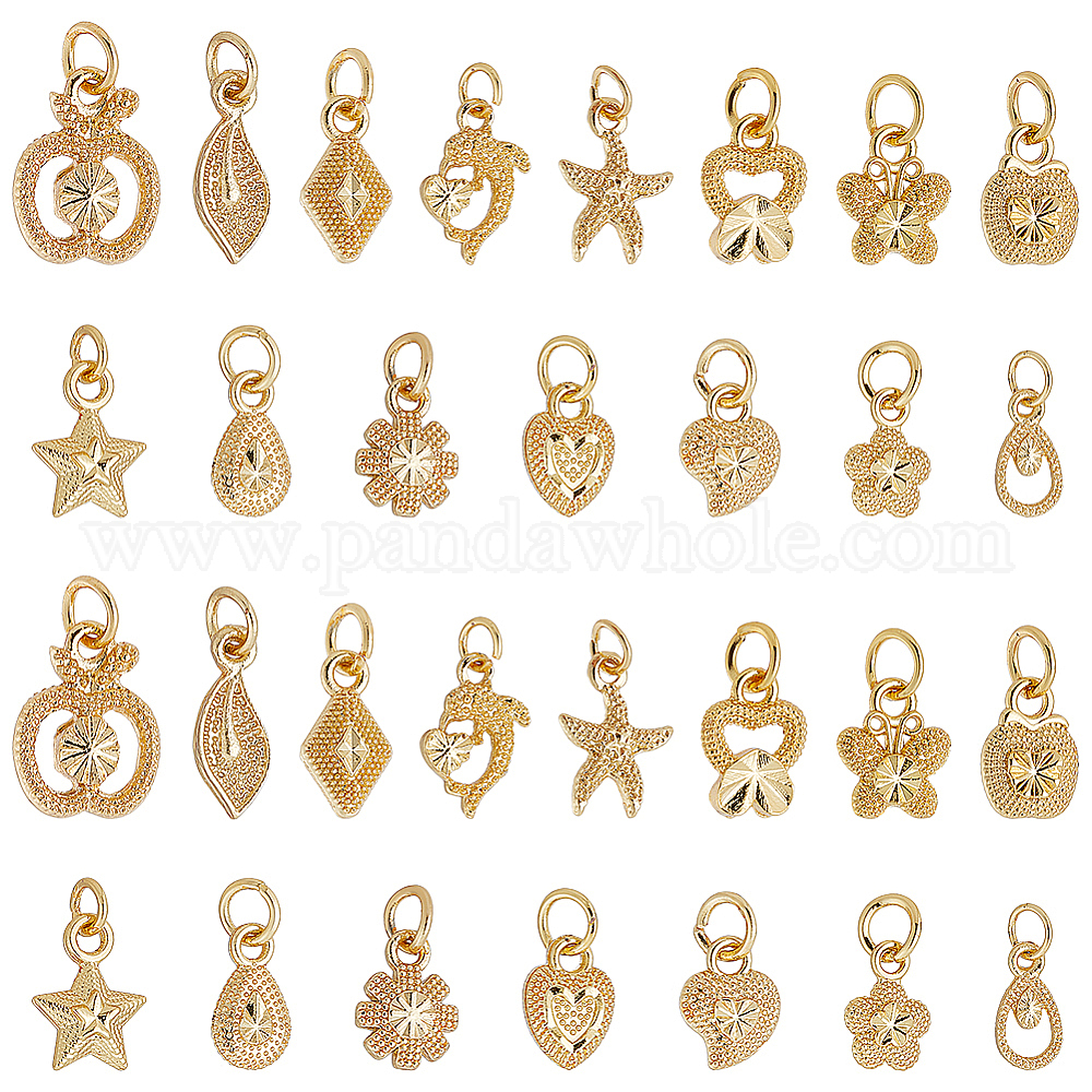 60шт 15 стиль гальванизированный сплав подвески, долговечный, С латунным кольцом прыжка, морская звезда и бабочка и цветок