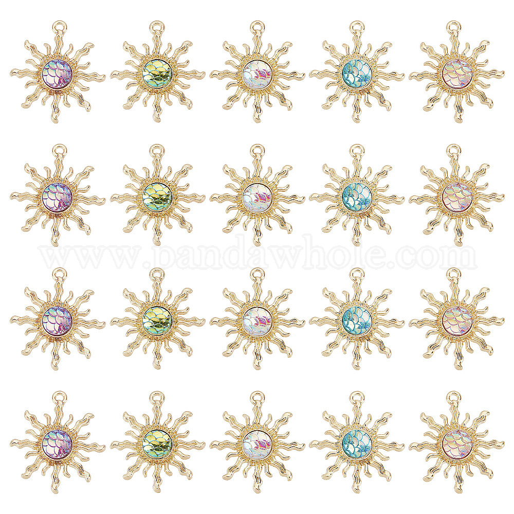 20 шт. 5 цвета подвески из сплава и пластика в виде чешуи рыбы-русалки и дракона, золотой свет, солнце