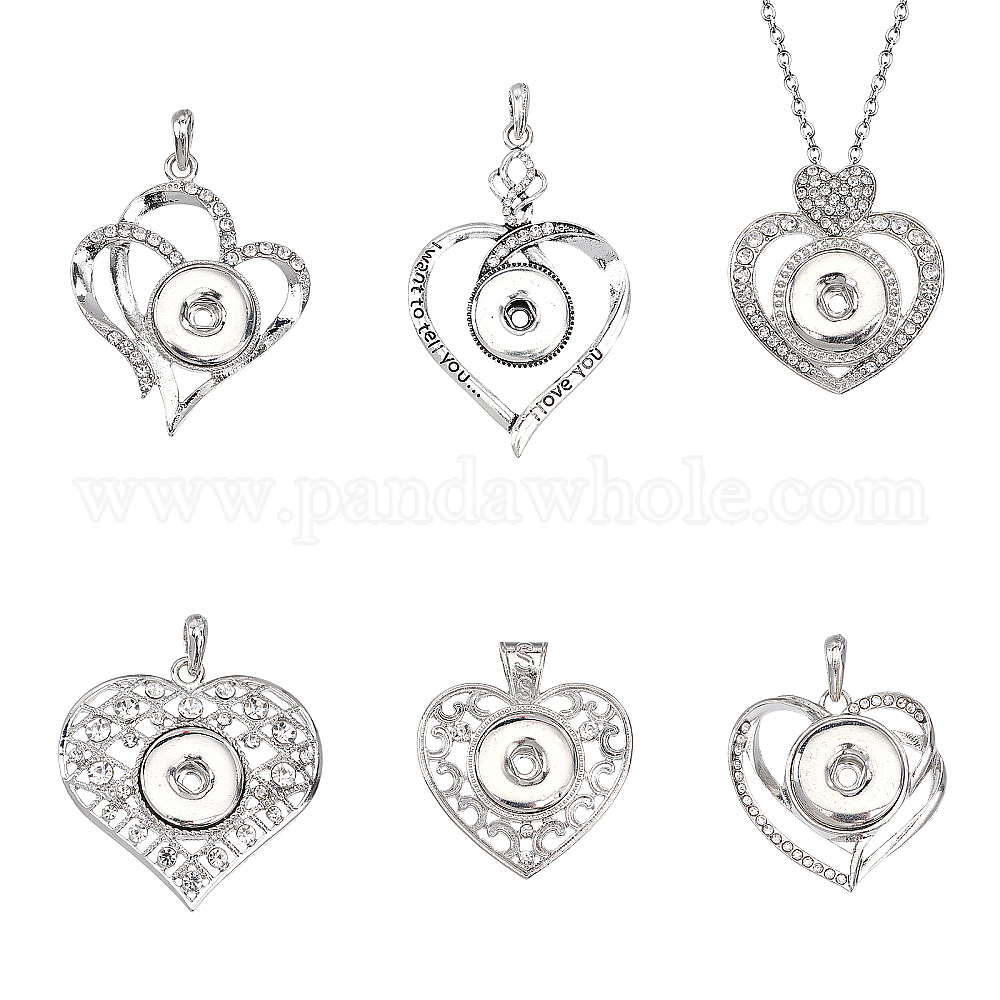 6 шт 6 стиль сплава горный хрусталь подвески защелкивающиеся основания, для изготовления ювелирных изделий со сменными подвесками, сердце
