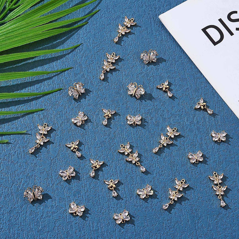 8 кусочки бабочки кубический цирконий подвеска подвеска насекомое очарование латунь микро паве кубический цирконий подвески для ювелирных изделий ожерелье браслет изготовление ремесел