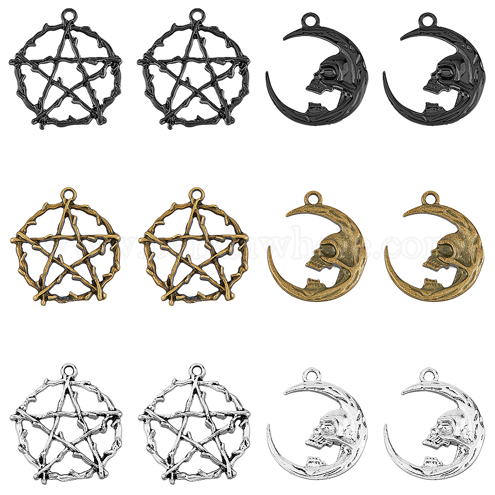 30 шт 6 стили подвески из сплава, луна с черепом и кольцом со звездой