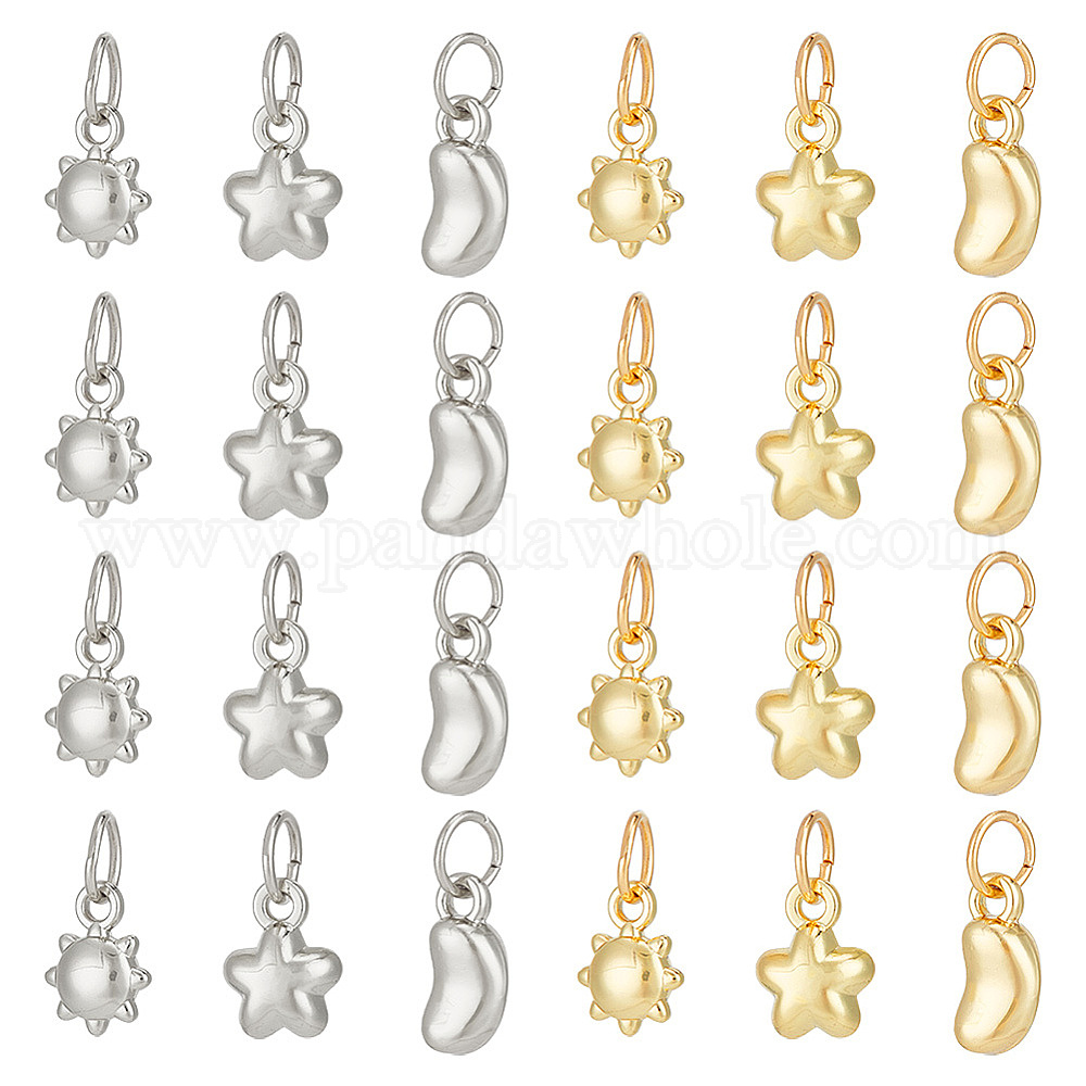 • Платиновый & Золотой 24 шт 6 стиль подвески из сплава, с целью перехода в кольце, очарование луны, звезд и солнца, платиной и золотом, 10~12x5.5~7x3.5~4.5 мм, отверстие : 4.4 мм, 4 шт / стиль