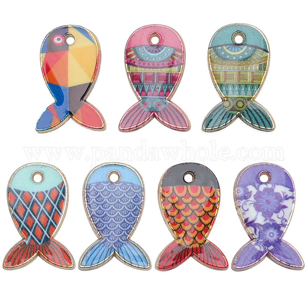 42шт 7 подвески из сплава с гальванопокрытием, напечатанный, без свинца, без кадмии и без никеля, очарование рыбы, золотой свет