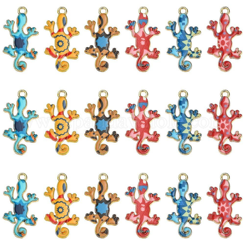 30 шт 6 цвета сплава эмалевые подвески, золотой свет, очарование геккона