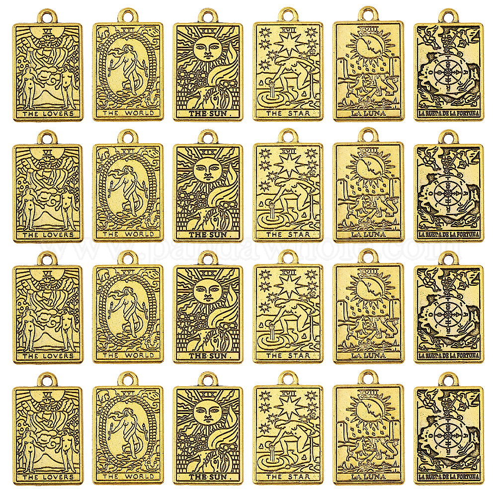 24 шт 6 подвески из цинкового сплава, прямоугольник с шармом Таро