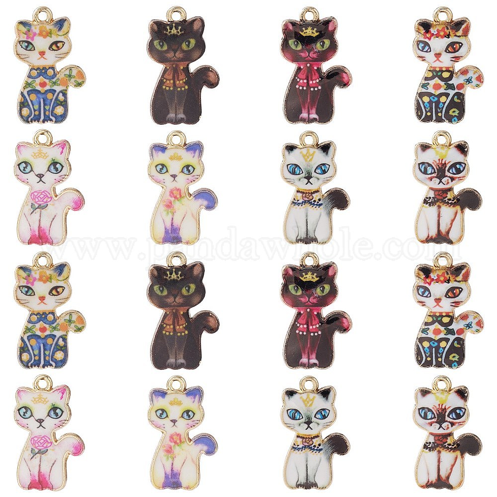 40шт 8 стили подвески из сплава с гальванопокрытием, напечатанный, без свинца, без кадмии и без никеля, кошачье очарование, золотой свет