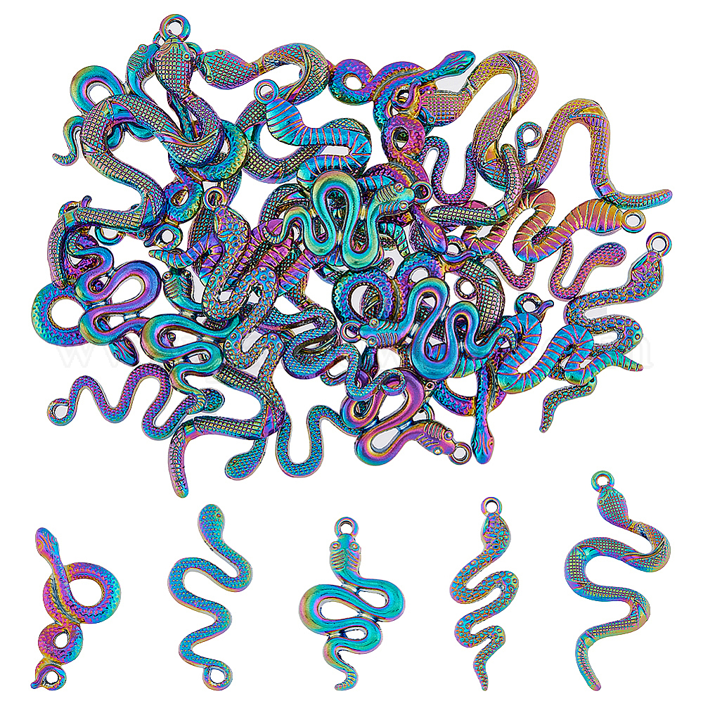 6 наборы подвесок из сплава радужного цвета, без кадмия, без никеля и без свинца, змея (02J7FE)