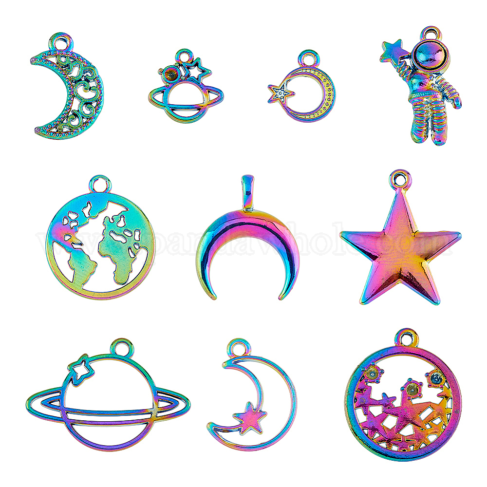 3 наборы подвесок из сплава радужного цвета, без кадмия, без никеля и без свинца, звездное небо тема смешанных форм (02J7JH)