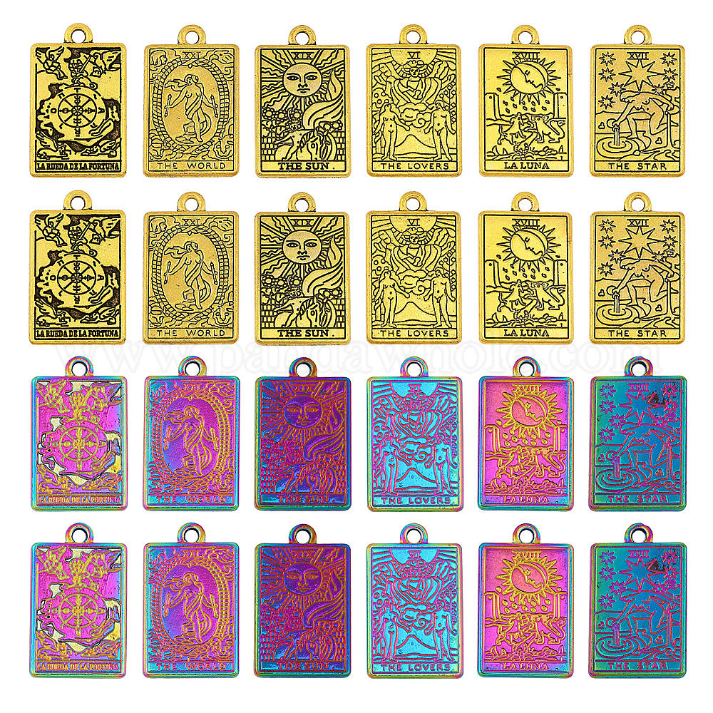 Прямоугольные подвески из сплава в тибетском стиле с шармом Таро: 23x14x1.5мм, отверстие : 2 мм, 2 шт / цвет, 6 цветов, 12шт;