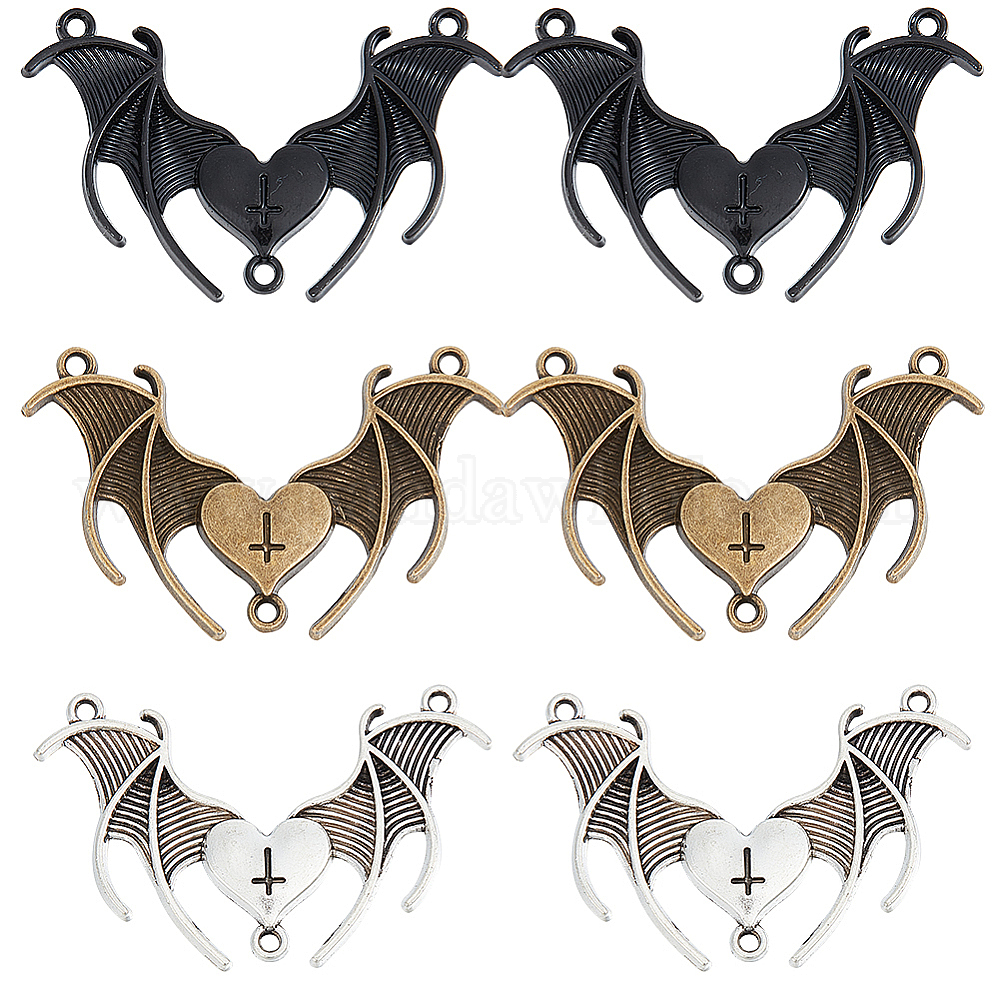 30шт 3 цвета сплав люстра компоненты ссылки, 3 контур, крыло с сердцем, летучая мышь