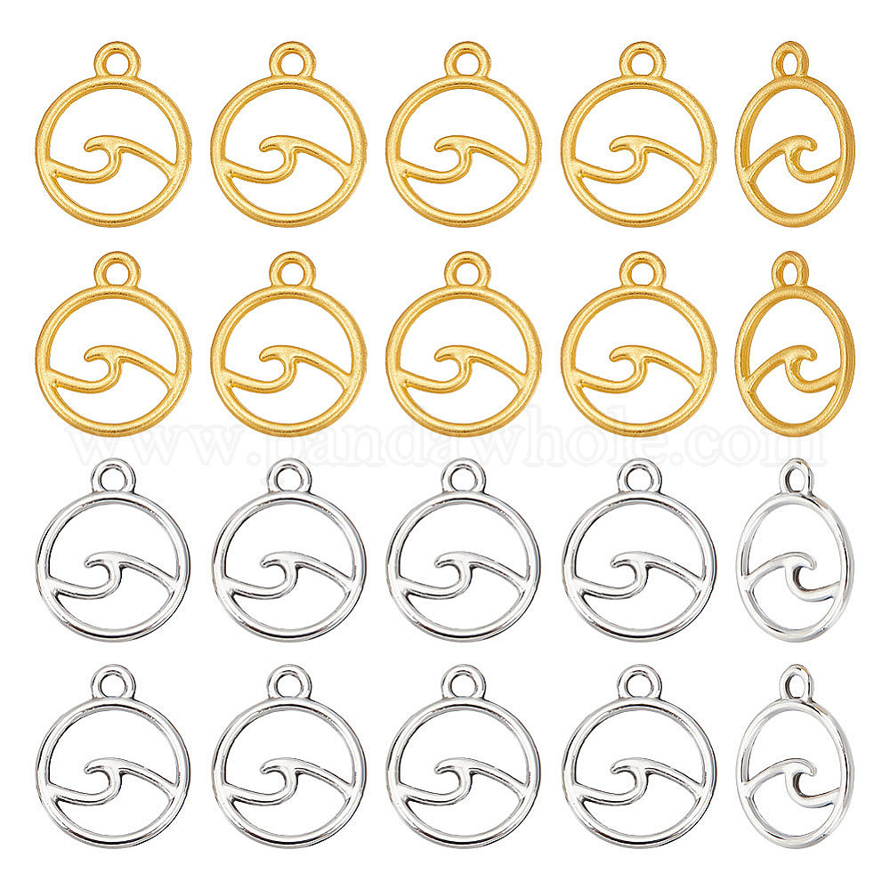 60шт 2цвета стойка покрытие сплав подвески, без кадмия, без свинца и без никеля, круглое кольцо с подвеской "волна" (02KB5B)