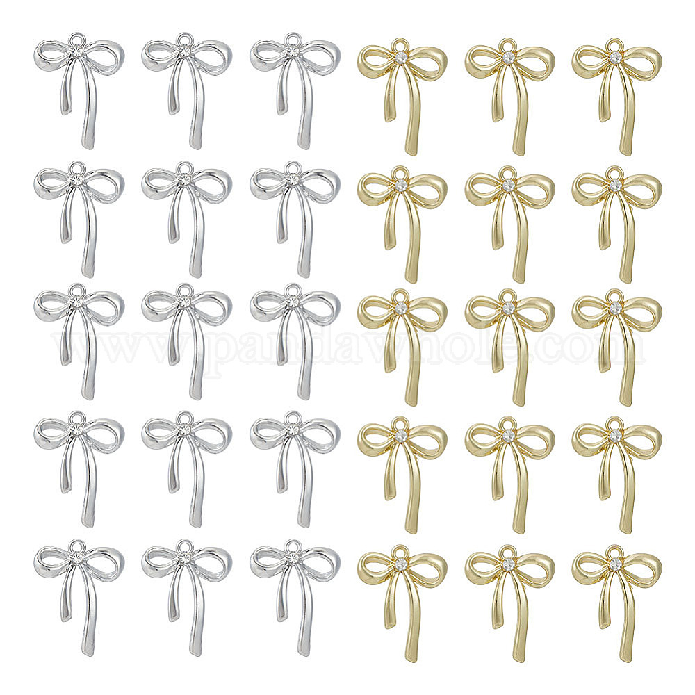 • Платиновый & Золотой 32 шт 2 цвета подвески из сплава, со стразами, бантом, платиной и золотом, 26x20x4 мм, отверстие : 1.6 мм, 16 шт / цвет