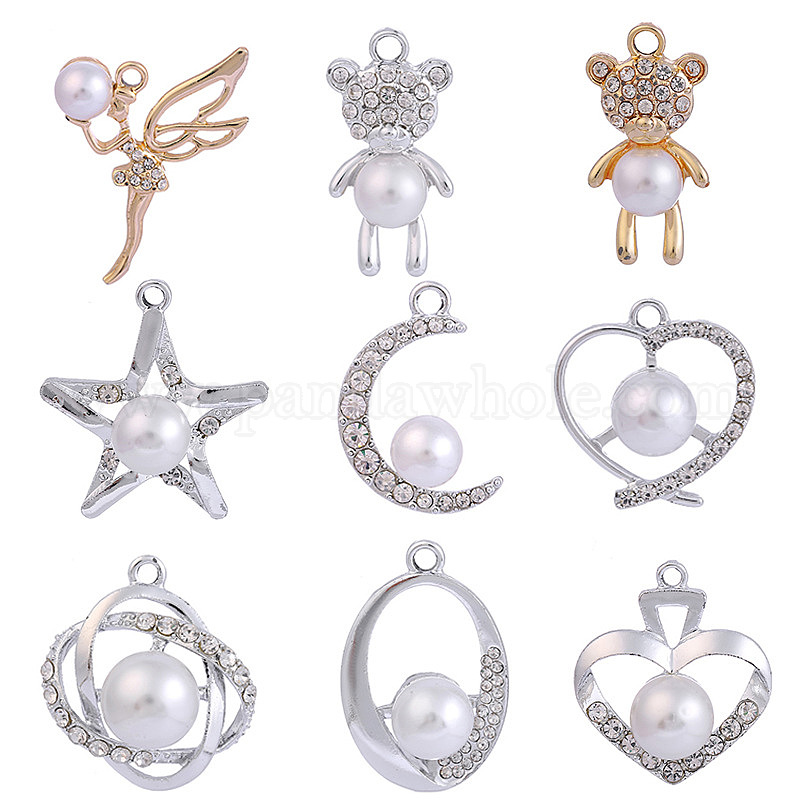 Подвески из сплава и страза, с пластиковой имитационной жемчужиной, платина