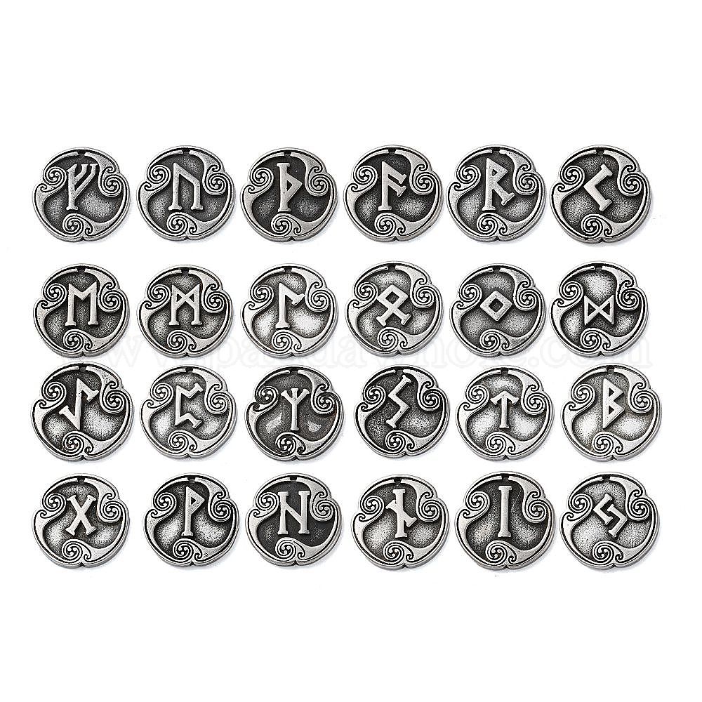 Подвески из сплава с руническими буквами, круглые