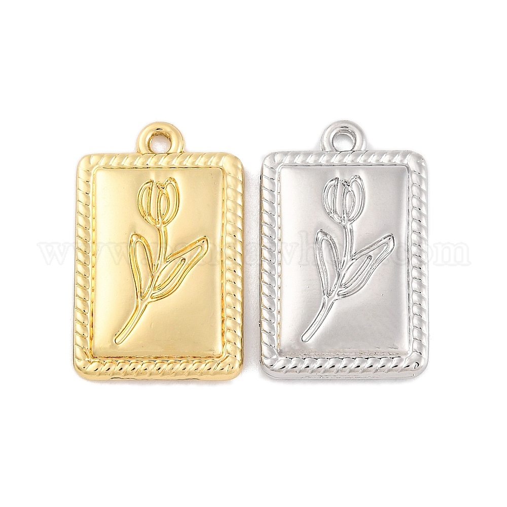 • Золотой Подвески из сплава , Прямоугольник с цветком, золотые, 20.5x13x2.5 мм, отверстие : 1.4 мм