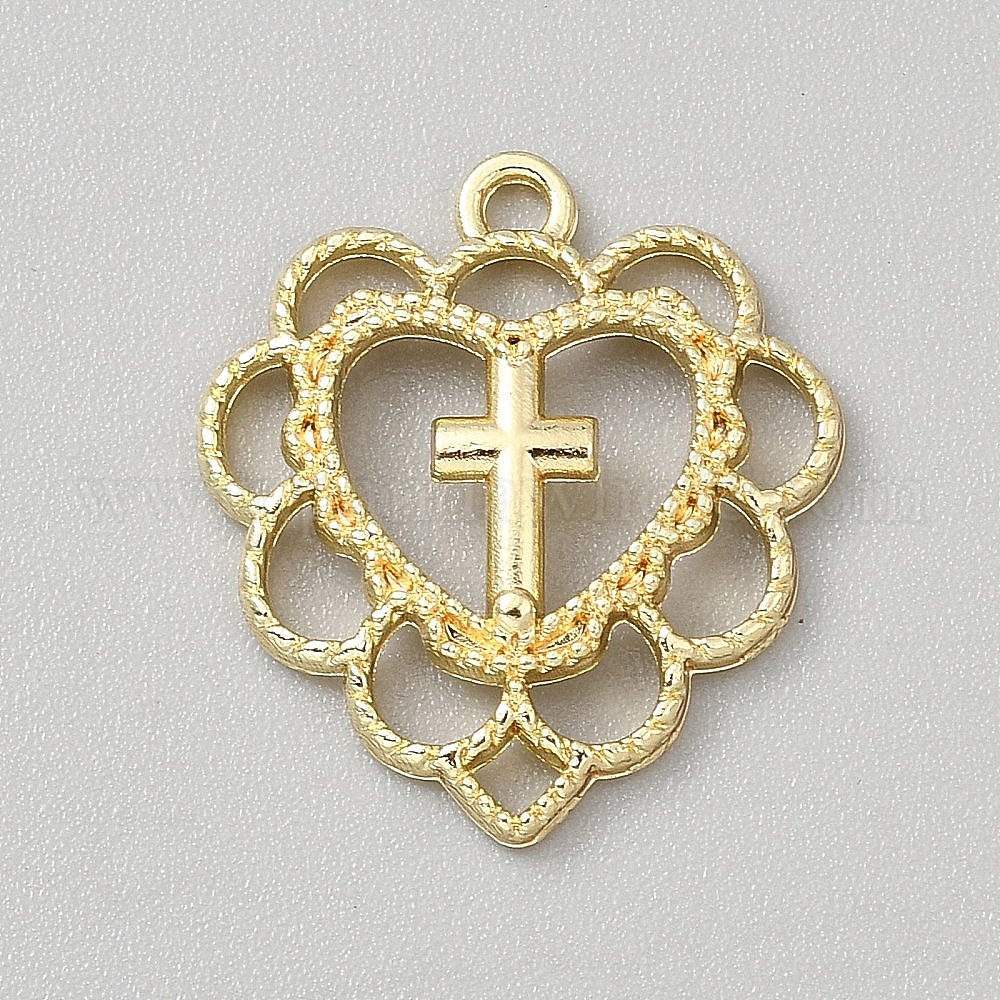 • Золотой Подвески из сплава , цветочные амулеты с сердцем, золотые, 21.5x20x3.5 мм, отверстие : 1.5 мм