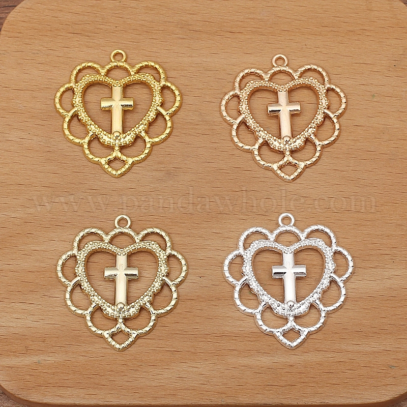 • Light Gold Подвески из сплава в форме полого сердца, золотой свет, 31x30 мм