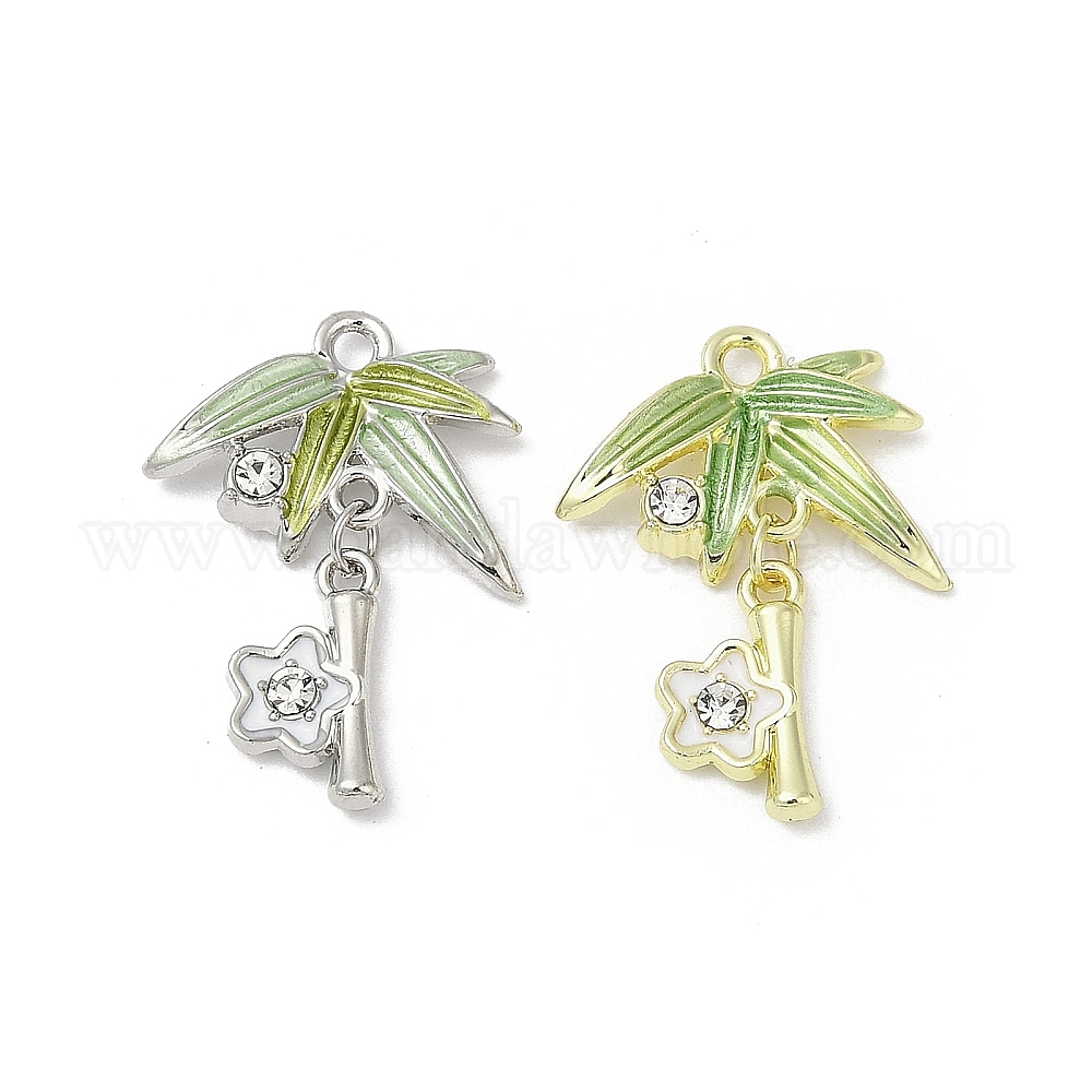 Подвески из сплава эмали и стразов с покрытием стойки, без кадмия, без никеля и без свинца, бамбуковых листьев