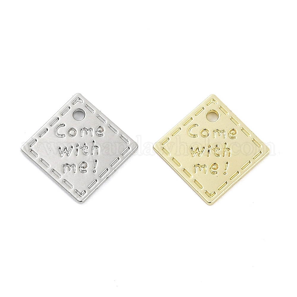 • Золотой Стойки подвески обшивки сплава, квадрат со словом пойдем со мной, без свинца, без никеля и без кадмия, золотые, 14.5x14.5x1.5 мм, отверстие : 1.2 мм