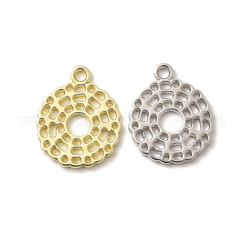 • Золотой Подвески из сплава , полые плоские круглые прелести, без свинца, без кадмии и без никеля, стойки покрытие, золотые, 18x15x1 мм, отверстие : 1.8 мм