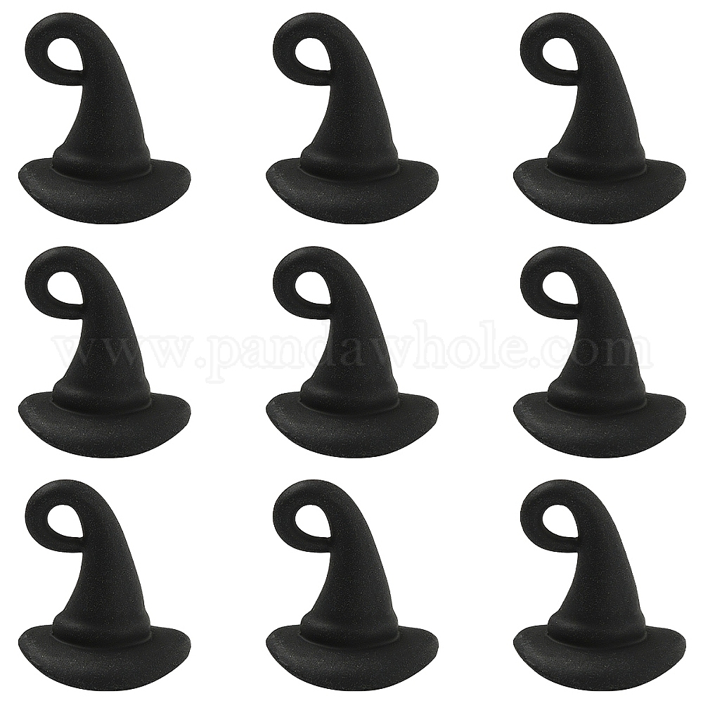 • Черный 10шт. подвески из сплава на тему Хэллоуина, выпечка окрашены, 3 d волшебная шляпа, чёрные, 12x10.5 мм, отверстие : 1.7 мм