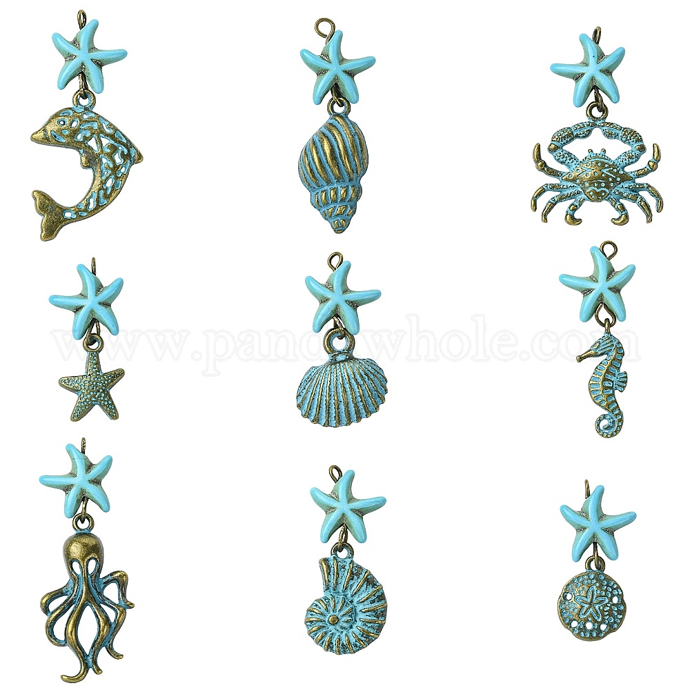 18 шт 9 подвески из сплава, с синтетической бирюзой и железными кольцами, разнообразные