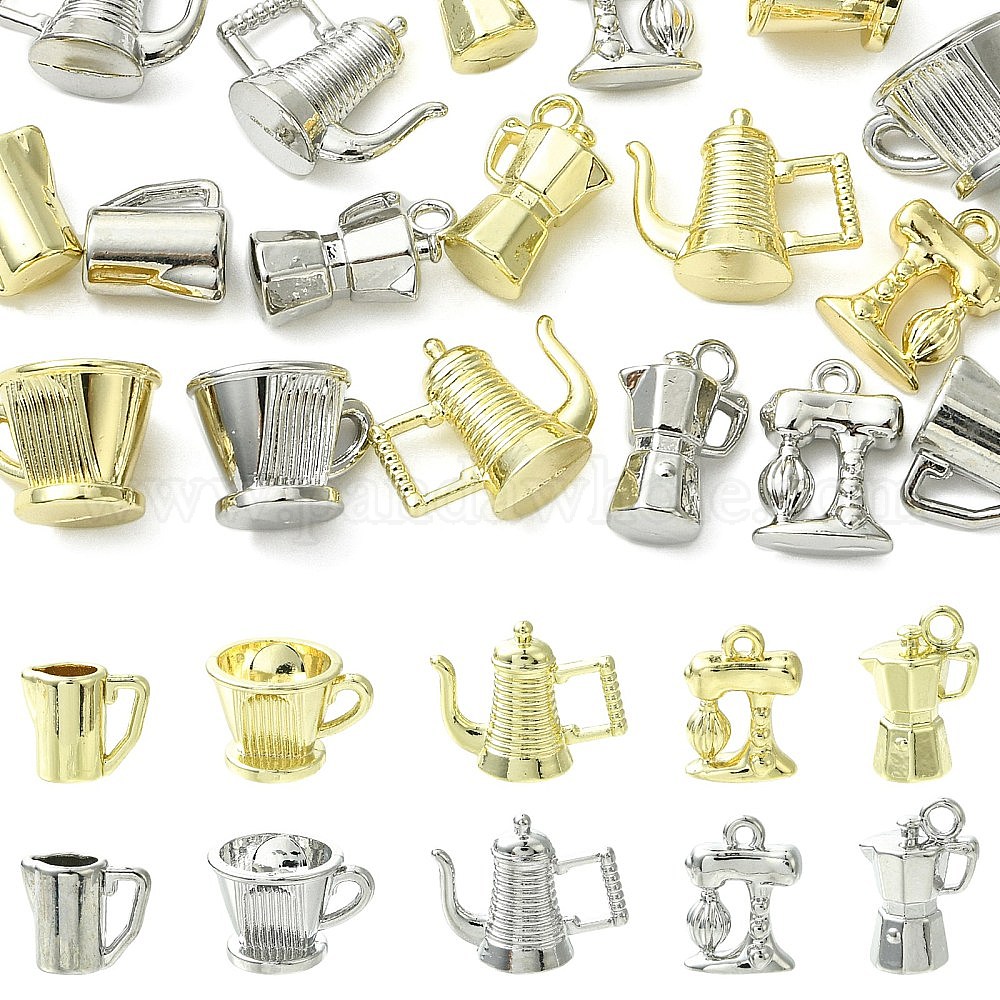 • Платина 20 шт 10 стили подвески из сплава, Брелоки в виде мока-кофеварки/чашки/кофемашины, платина, 10~20.5x10~17x4.5~11 мм, отверстие : 1.4~5x1.4~4 мм, 2 шт / стиль