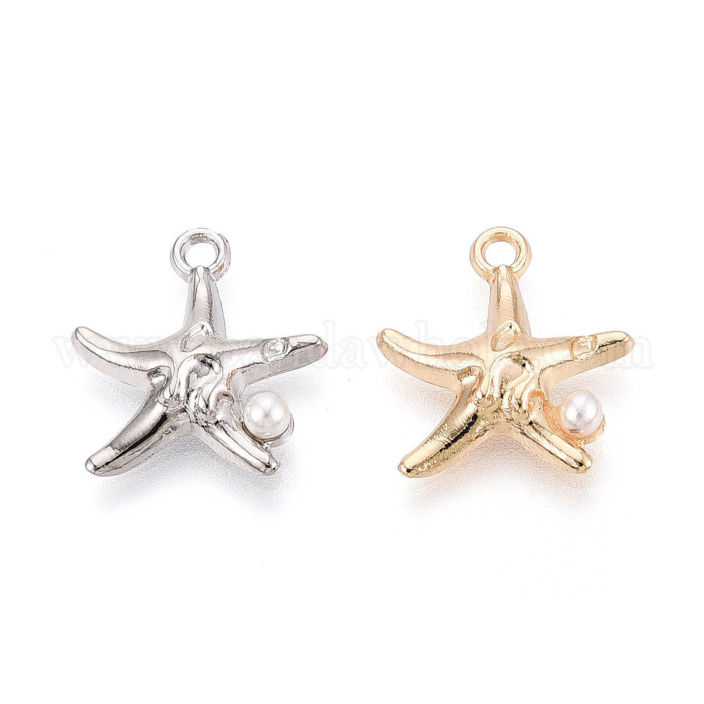 Подвески из сплава с гальваническим покрытием и имитацией жемчуга, прелести морская звезда, без кадмия, без никеля и без свинца