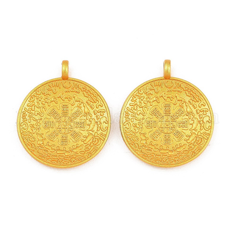 • Золотой Подвески из сплава , плоский круглый амулет с подвесками, золотые, 26.5x22.5x3 мм, отверстие : 2.7 мм