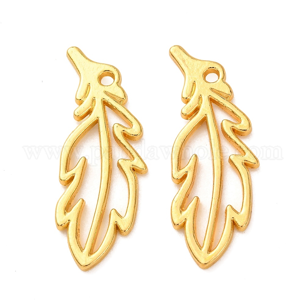 • Золотой Подвески из сплава , полые перьевые подвески, золотые, 26.5x10x1.3 мм, отверстие : 1.5 мм, Около 1163 шт / 1000 г
