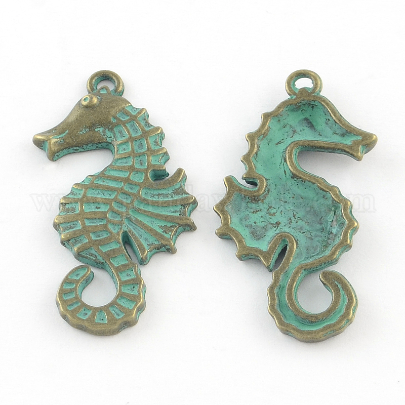 Цинкового сплава подвески Морской конек, без кадмия и без свинца, 38x20x2 мм, отверстие : 2 мм
