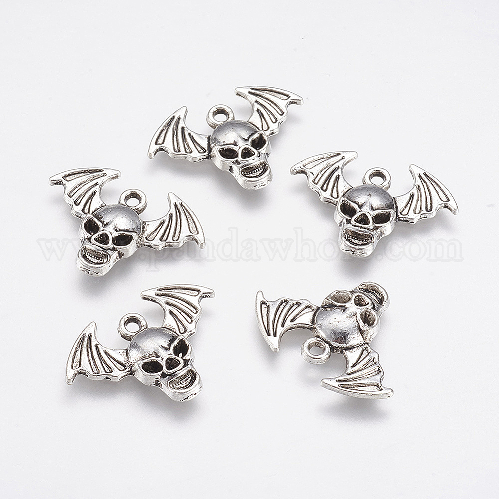 • Античное Серебро Подвески из сплава , череп с крылом, античное серебро, 17x23x3 мм, отверстие : 1.5 мм