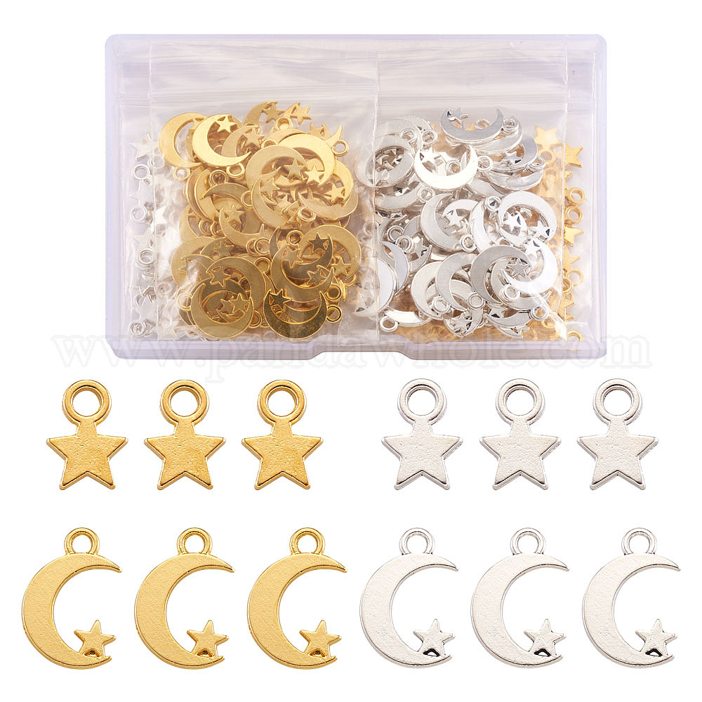 • Платиновый & Золотой Подвески из сплава , для изготовления аксессуаров своими руками, луна со звездой и звездой, платиной и золотом, 300 шт / коробка