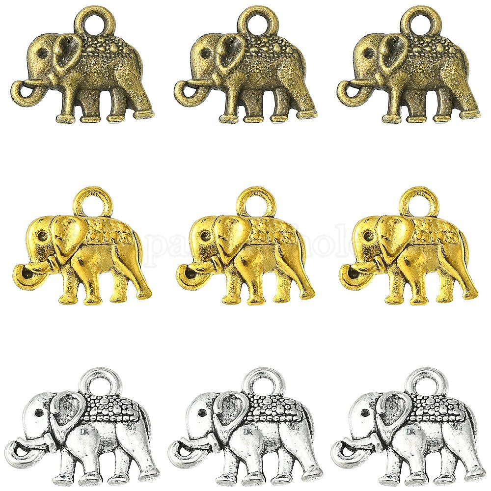 талисманы слона из цинкового сплава в тибетском стиле: 13 ширина мм, 11 мм длиной, отверстие : 2 мм, 3 цветов, 10 шт / цвет, 30 шт / коробка;